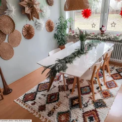 Instructies voor reiniging en onderhoud: Behoedzaam stofzuigen in de richting van de polen, en zachtjes uitschudden. Verwijder vlekken ze ontstaan met een vochtige doek. Anders: neem een erkende tapijtreiniger in de arm.