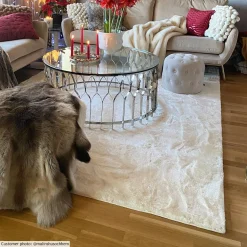 Instructies voor reiniging en onderhoud: Behoedzaam stofzuigen in de richting van de polen, en zachtjes uitschudden. Verwijder vlekken ze ontstaan met een vochtige doek. Anders: neem een erkende tapijtreiniger in de arm.