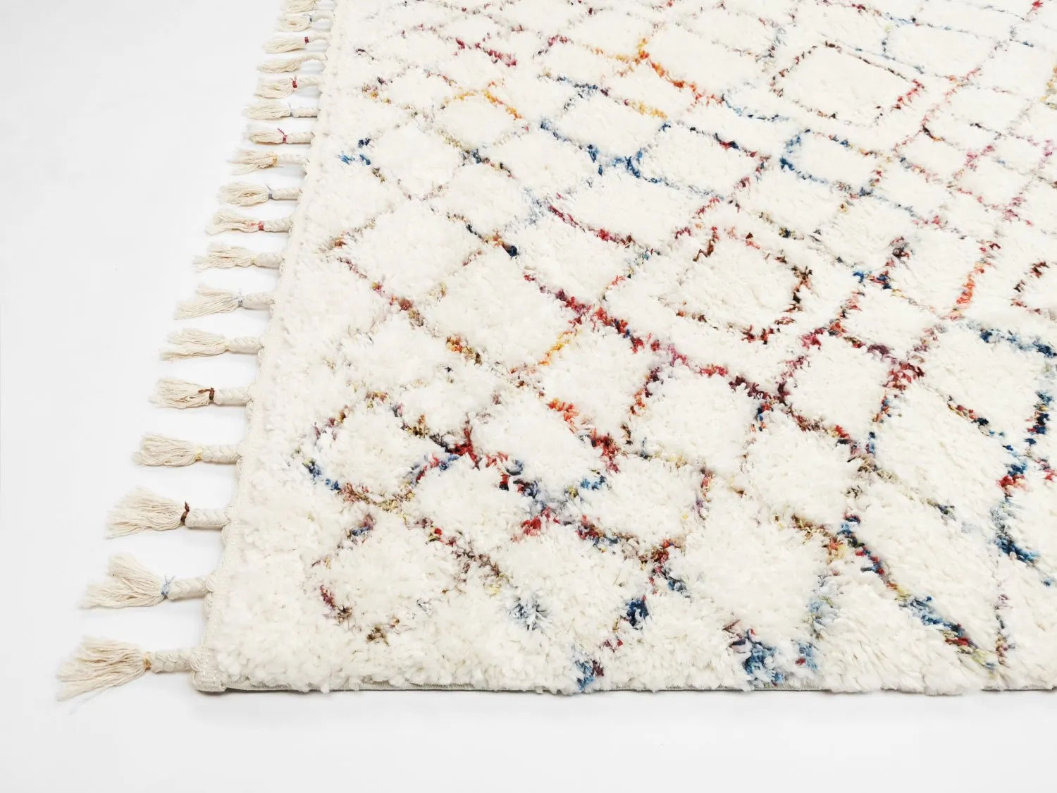 Shaggy vloerkleed in Marokkaanse stijl. Geïnspireerd door Beni Ourain en Azilal. Zacht, dicht, indrukwekkende pool.