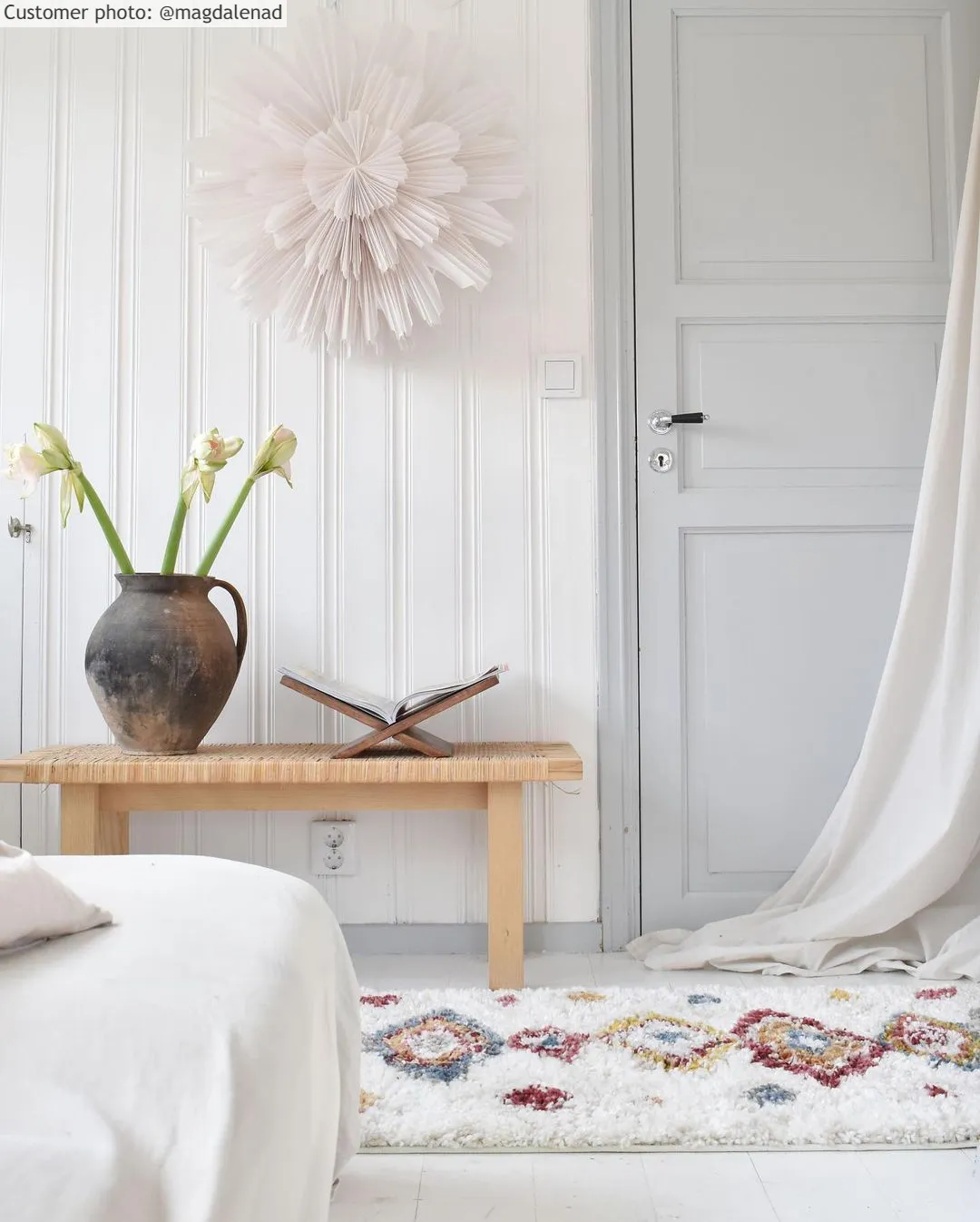 Instructies voor reiniging en onderhoud: Behoedzaam stofzuigen in de richting van de polen, en zachtjes uitschudden. Verwijder vlekken ze ontstaan met een vochtige doek. Anders: neem een erkende tapijtreiniger in de arm.