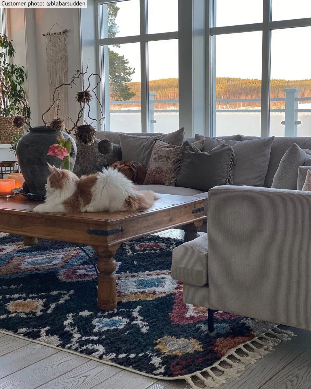 Instructies voor reiniging en onderhoud: Behoedzaam stofzuigen in de richting van de polen, en zachtjes uitschudden. Verwijder vlekken ze ontstaan met een vochtige doek. Anders: neem een erkende tapijtreiniger in de arm.