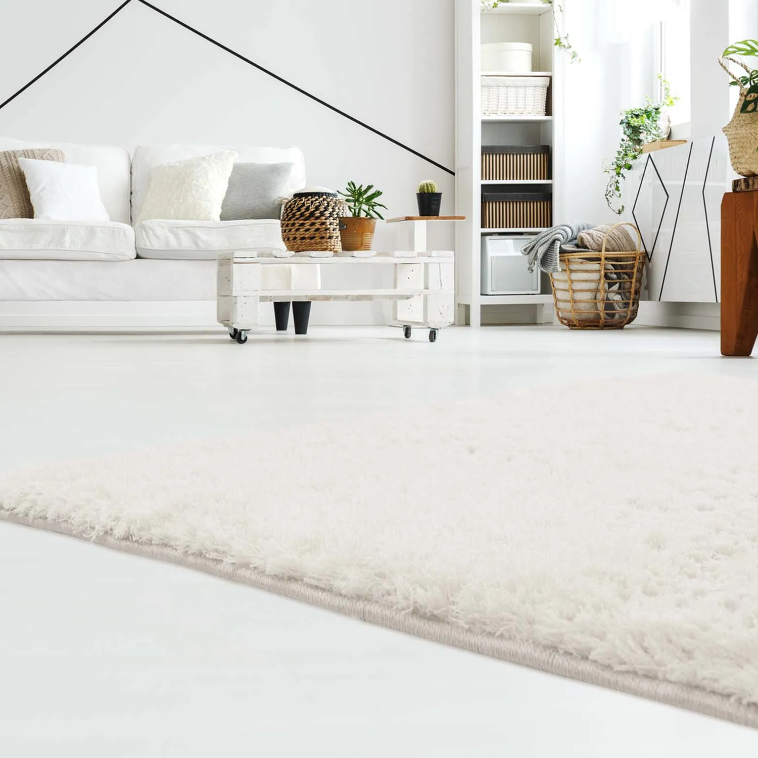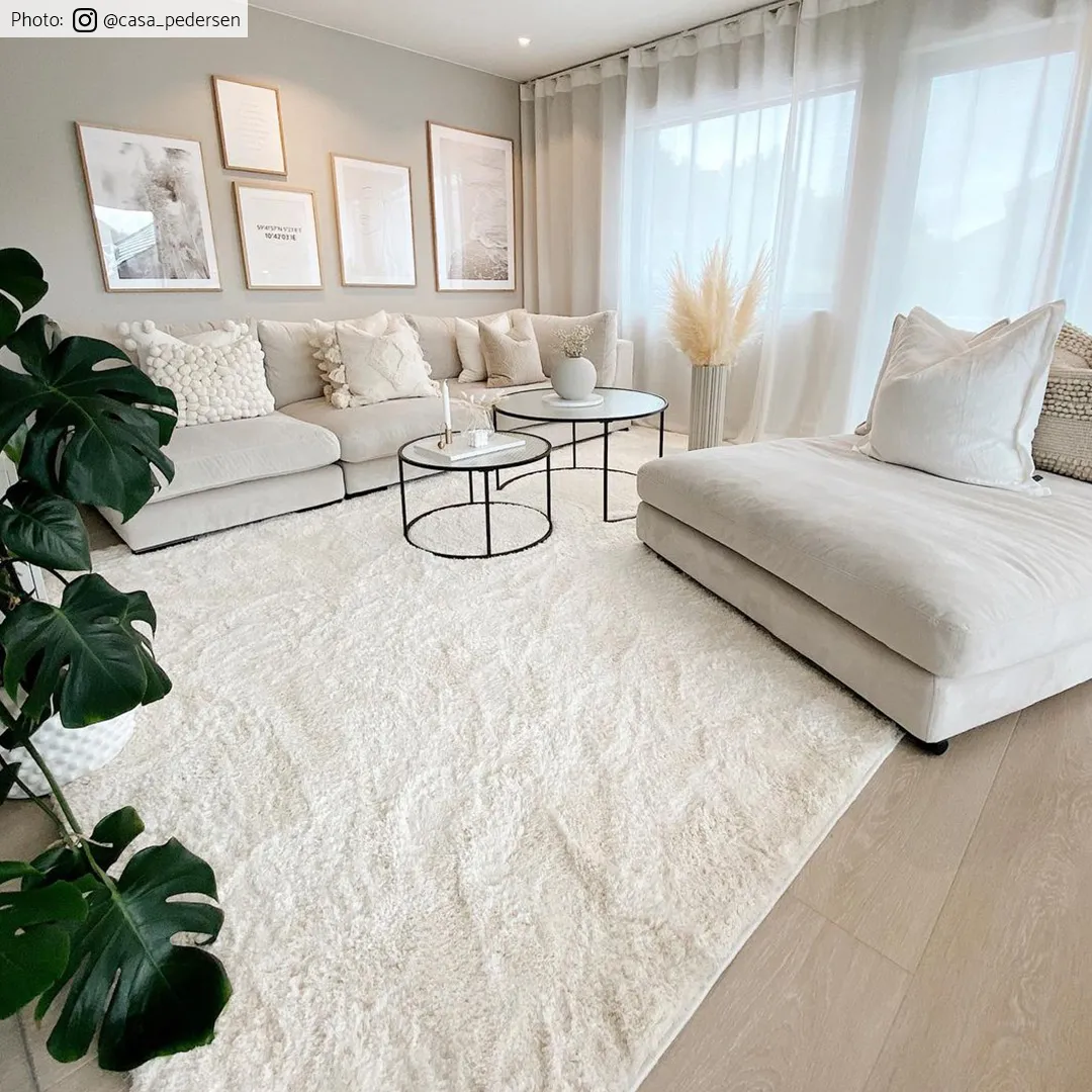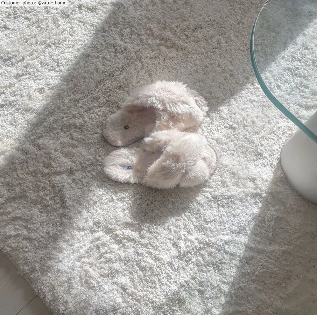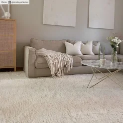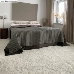 Tapijt van Rya. Zacht, dicht, indrukwekkende pool. Glanzende draden worden afgewisseld met matte en geven een levendig, golvend Rya tapijt.