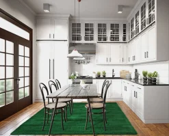 In tegenstelling tot een echt zijden vloerkleed is dit plastic vloerkleed echter zeer eenvoudig schoon te maken. Een vlek kan, omdat het vloerkleed van plastic is gemaakt, gemakkelijk met een lauwwarm sopje en een katoenen doek worden schoongemaakt.