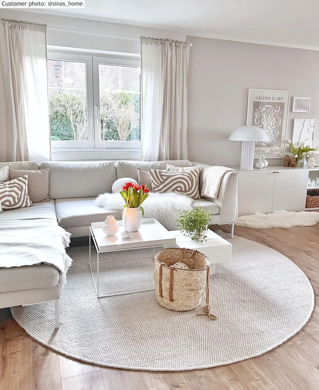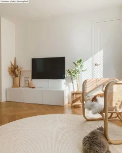 Plat geweven vloerkleed van wol. Wollen vloerkleed met dunne, mooie snit. Geweldige kwaliteit. Makkelijk te verplaatsen. Ligt stevig en plat op de vloer. Geeft een gevoel van originaliteit.