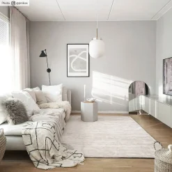 Vloerkleed van viscose – glanzend en zijdeachtig. Het viscosevloerkleed is het trend-tapijt van het jaar – te zien in alle interieur tijdschriften en blogs. Geweldige kwaliteit, solide en gemakkelijk te hanteren. Ligt perfect op de vloer.