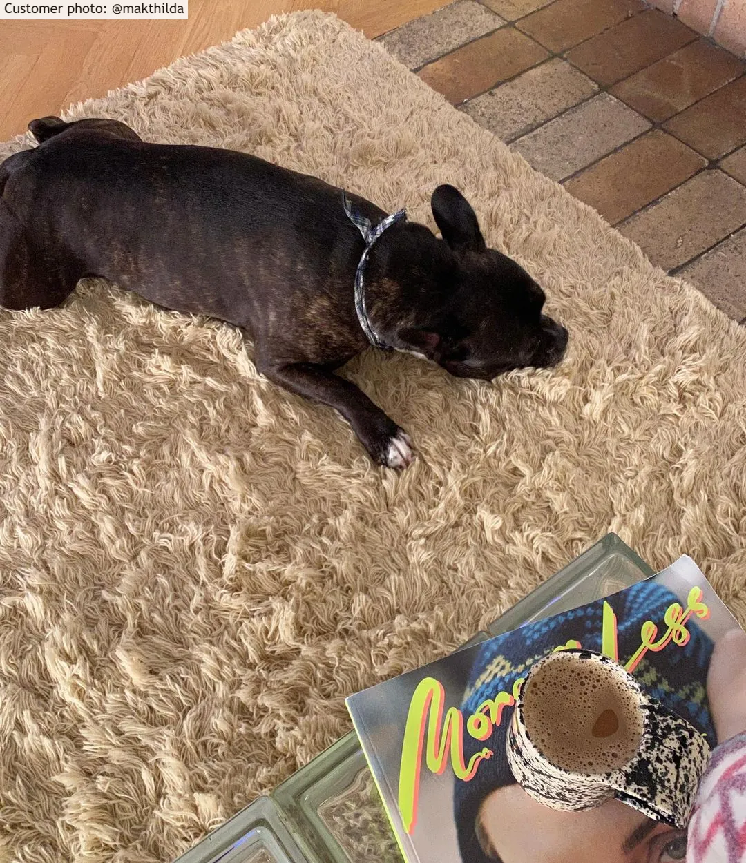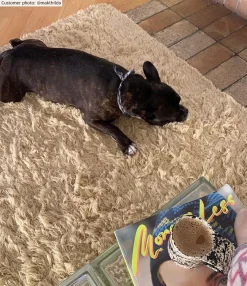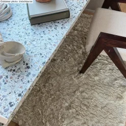Plat geweven vloerkleed van wol. Wollen vloerkleed met dunne, mooie snit. Geweldige kwaliteit. Makkelijk te verplaatsen. Ligt stevig en plat op de vloer. Geeft een gevoel van originaliteit.
