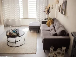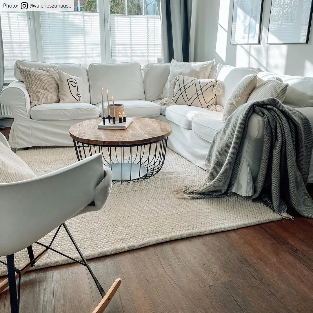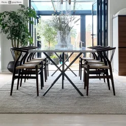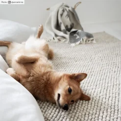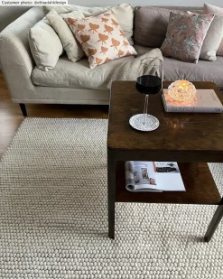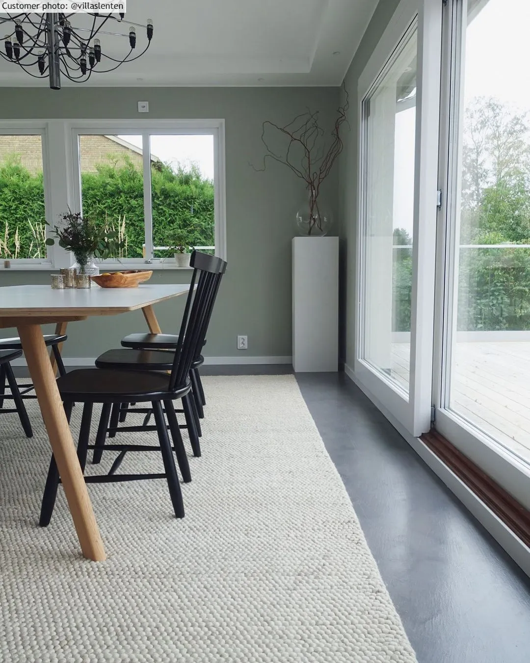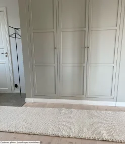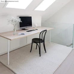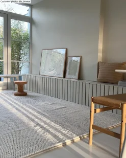 Plat geweven vloerkleed van wol. Wollen vloerkleed met dunne, mooie snit. Geweldige kwaliteit. Makkelijk te verplaatsen. Ligt stevig en plat op de vloer. Geeft een gevoel van originaliteit.