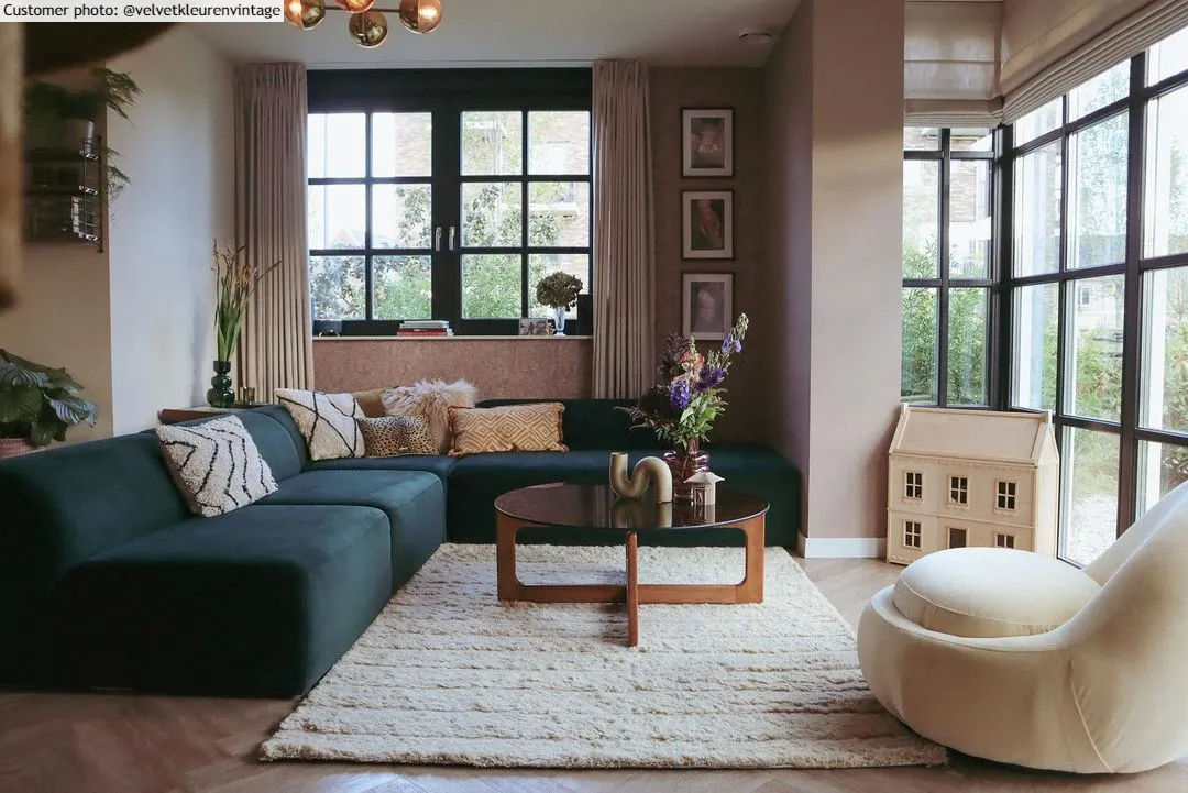 Plat geweven vloerkleed van wol. Wollen vloerkleed met dunne, mooie snit. Geweldige kwaliteit. Makkelijk te verplaatsen. Ligt stevig en plat op de vloer. Geeft een gevoel van originaliteit.