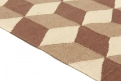 Plat geweven vloerkleed van wol. Wollen vloerkleed met dunne, mooie snit. Geweldige kwaliteit. Makkelijk te verplaatsen. Ligt stevig en plat op de vloer. Geeft een gevoel van originaliteit.