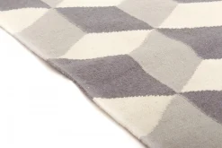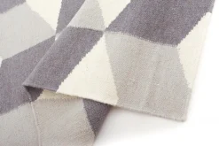 Plat geweven vloerkleed van wol. Wollen vloerkleed met dunne, mooie snit. Geweldige kwaliteit. Makkelijk te verplaatsen. Ligt stevig en plat op de vloer. Geeft een gevoel van originaliteit.