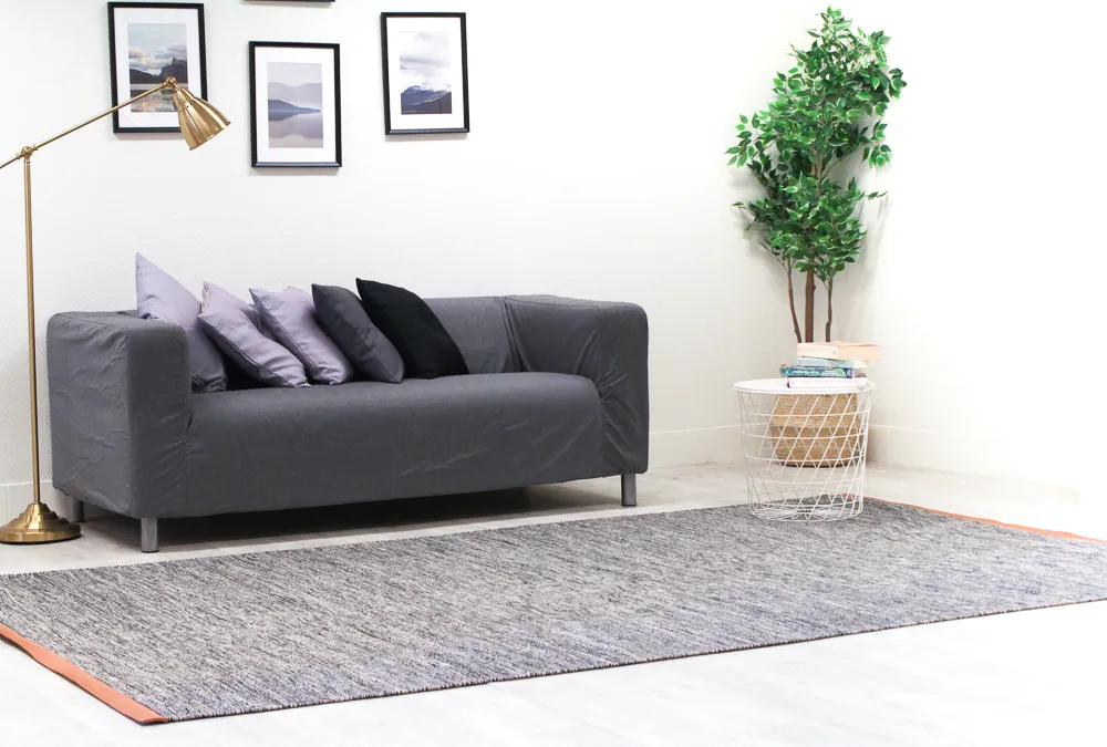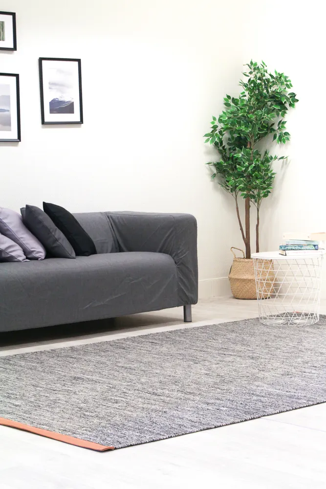 Plat geweven vloerkleed van wol. Wollen vloerkleed met dunne, mooie snit. Geweldige kwaliteit. Makkelijk te verplaatsen. Ligt stevig en plat op de vloer. Geeft een gevoel van originaliteit.