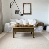 Plat geweven vloerkleed van wol. Wollen vloerkleed met dunne, mooie snit. Geweldige kwaliteit. Makkelijk te verplaatsen. Ligt stevig en plat op de vloer. Geeft een gevoel van originaliteit.