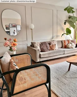 Plat geweven vloerkleed van wol. Wollen vloerkleed met dunne, mooie snit. Geweldige kwaliteit. Makkelijk te verplaatsen. Ligt stevig en plat op de vloer. Geeft een gevoel van originaliteit.