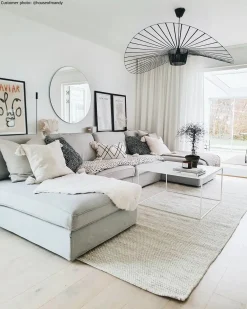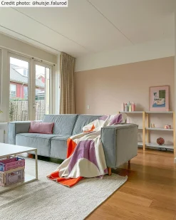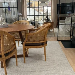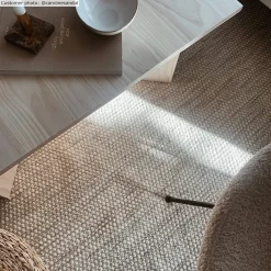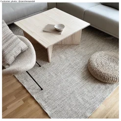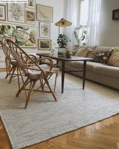 Plat geweven vloerkleed van wol. Wollen vloerkleed met dunne, mooie snit. Geweldige kwaliteit. Makkelijk te verplaatsen. Ligt stevig en plat op de vloer. Geeft een gevoel van originaliteit.