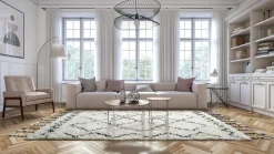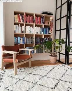 Plat geweven vloerkleed van wol. Wollen vloerkleed met dunne, mooie snit. Geweldige kwaliteit. Makkelijk te verplaatsen. Ligt stevig en plat op de vloer. Geeft een gevoel van originaliteit.